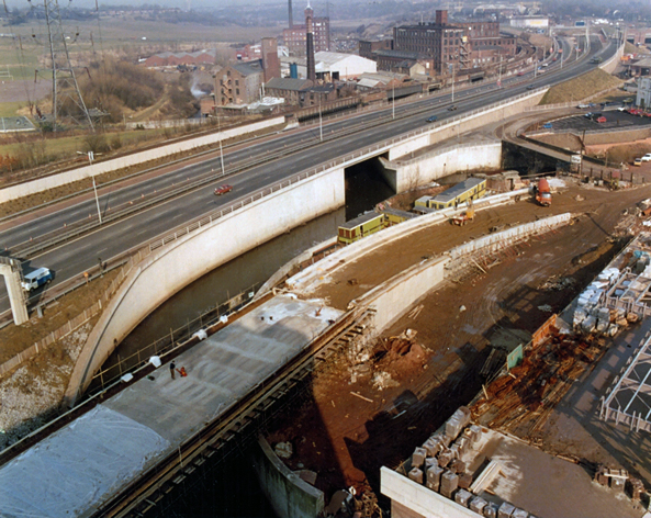 Though the lazy, lazy river has been confined in a brick lined wind, to meet the ever pressing needs of the Gorton Sewage Works.