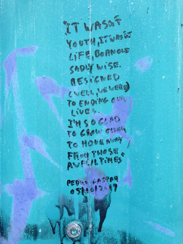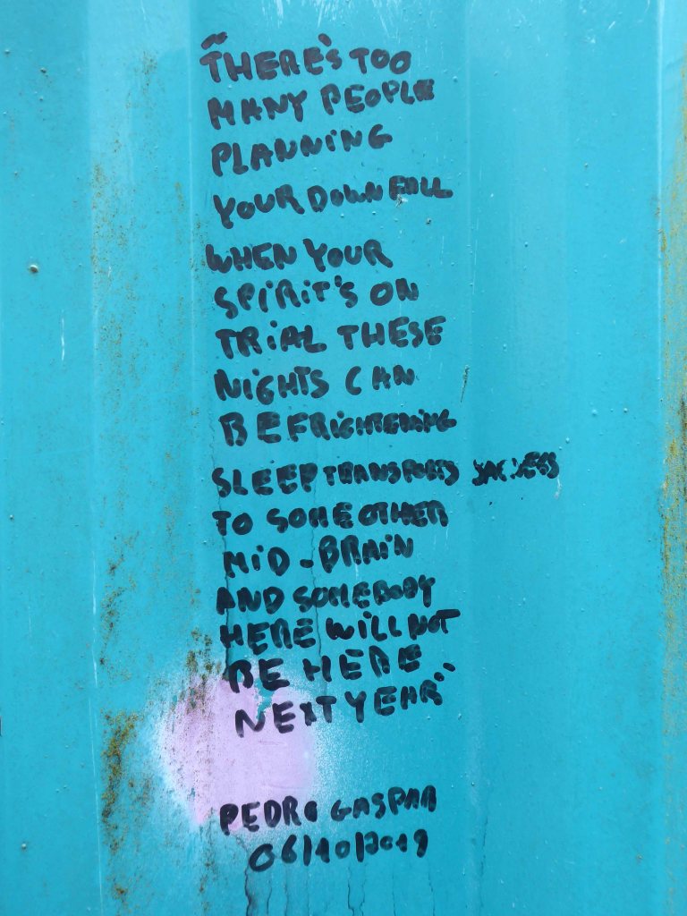 The location is now a place of pilgrimage for Morrissey’s deluded fans, who with depressing regularity, adorn the structure with their misquoted quotes.