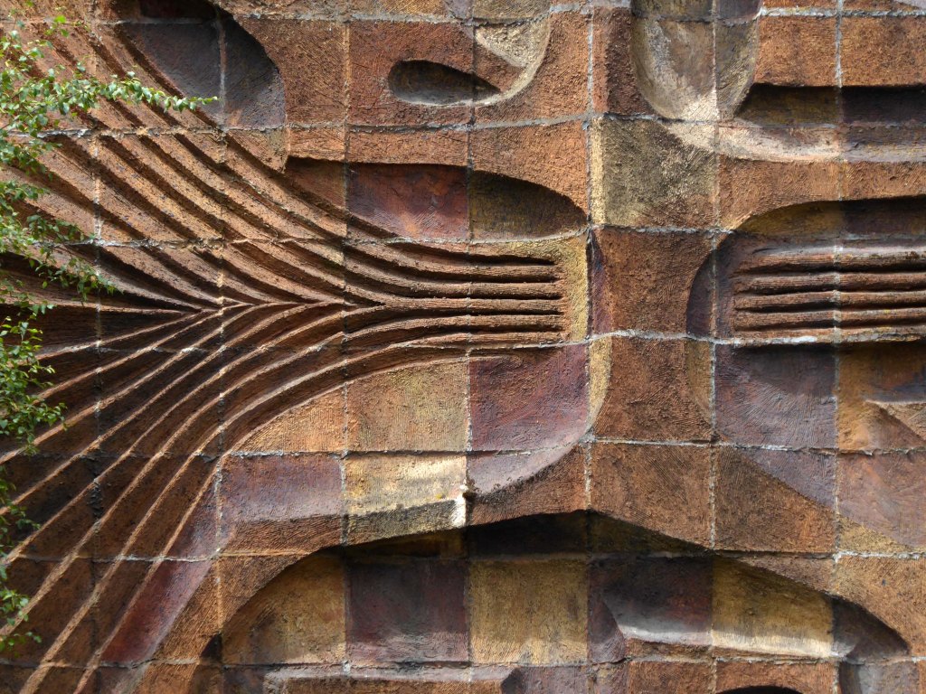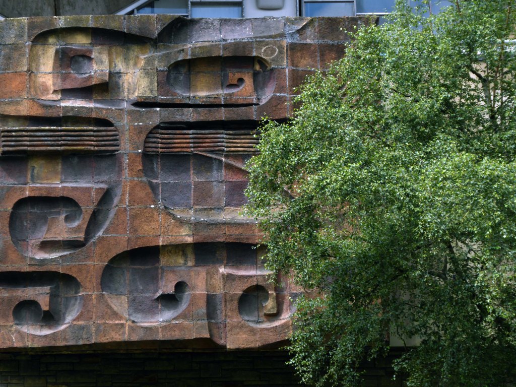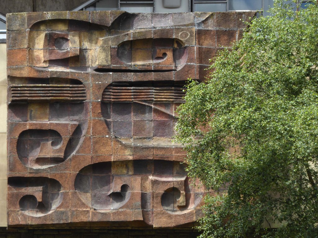 Within the square is a frieze, salvaged from the former Gaumont Cinema, the work of sculptor Newbury Abbot Trent.